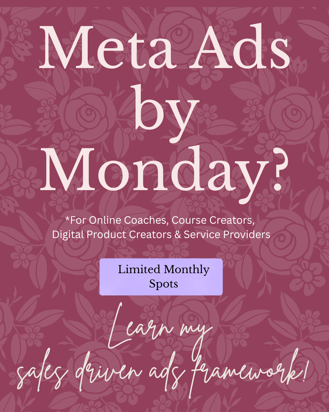 Meta Ads by Monday is a focused, one-week ad intensive where we get your ads created, built, and live in 7 days!